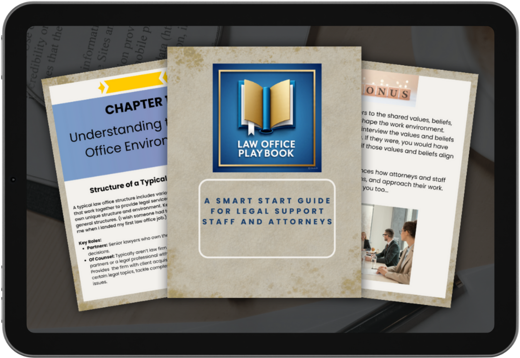 This playbook is designed to give you real-world skills, tools, and guidance to help you succeed with confidence and manage the demands of law office life.